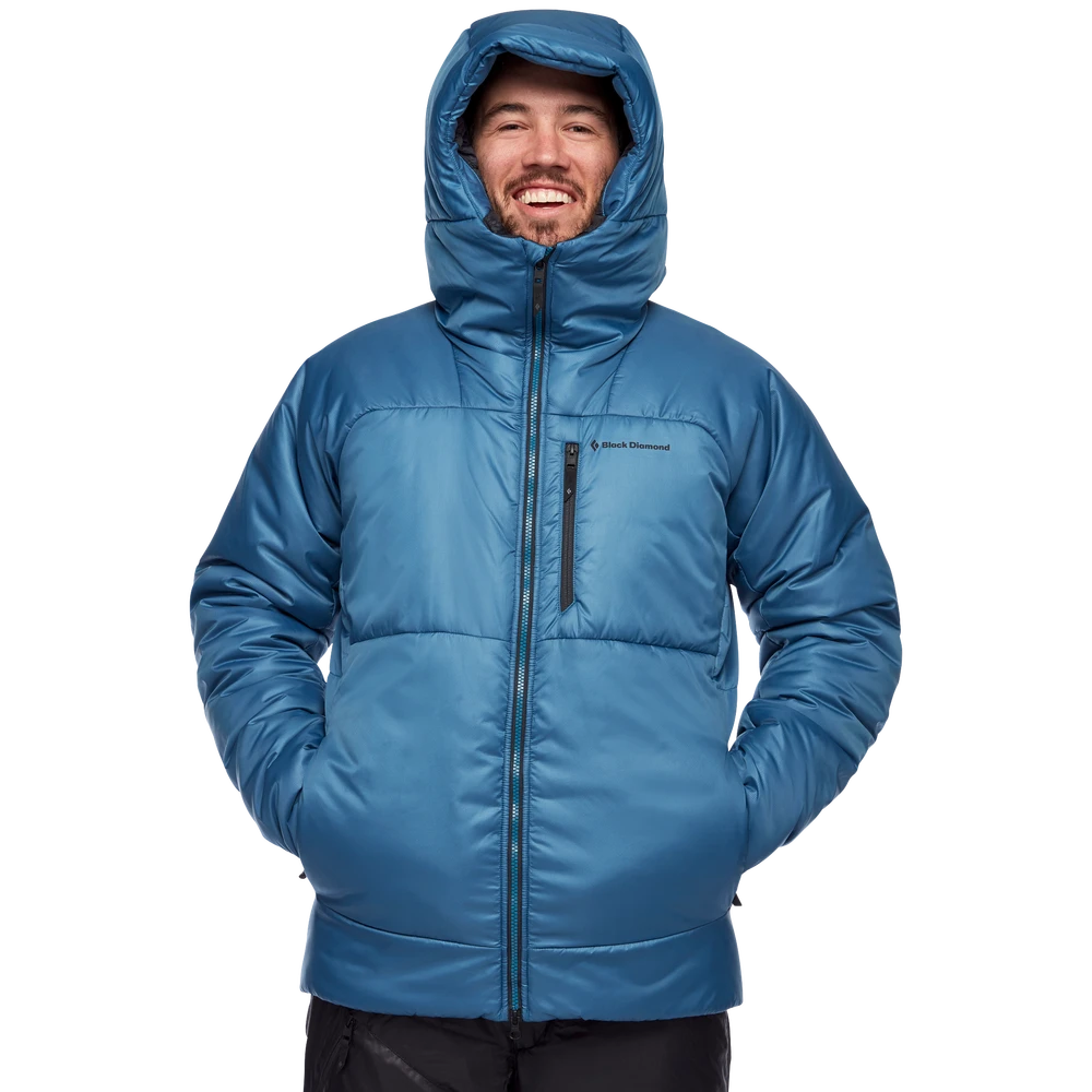 Designed to endure bail-worthy belay conditions on single-pitch winter routes and huge alpine faces alike, the Black Diamond Belay Parka lets you hunker down while your partner battles it out on the sharp end. Our warmest synthetic jacket, the updated Stance features a new, more durable shell fabric with a PFC-free DWR finish and two layers of lofty ThermoLite® insulation that provides serious warmth even when wet. A two-way zipper allows access to your belay device, and oversized hand, chest and internal drop pockets store gloves, water bottles and other on-route essentials.