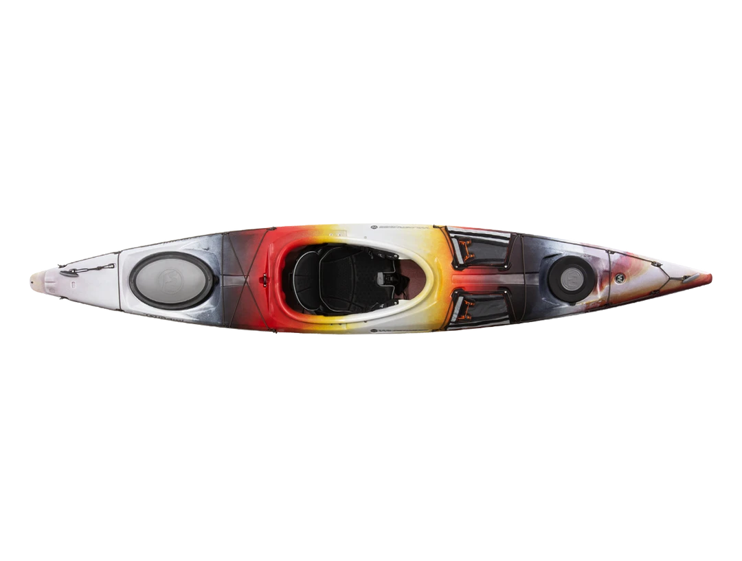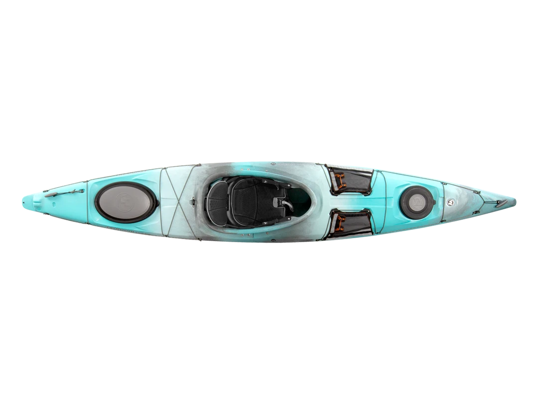 An icon is reimagined in the all-new Tsunami. The aesthetics of the new Tsunami inspire performance and exploration with modern deck lines, while a focus on improving the paddler’s experience sees new features incorporated into the design – two removable mesh deck storage bags are perfect for stowing close-at-hand items, and an under-deck storage area provides another alternative for staging your favorite beverage. Small changes with big effects have also been integrated into the hull – the flared sidewalls and increased volume above the waterline have been improved to provide more confidence and stability, while the longer waterline has increased speed and efficiency. The Tsunami 125 is swift and agile, the spacious cockpit and deeper hull is ideal for day trippers. A touring kayak that excels in tight, twisting environments.
