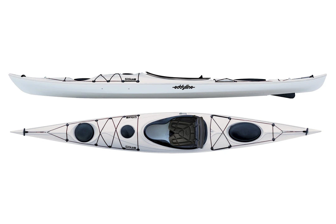 The Sitka LT is a lightweight, maneuverable, high-performing day touring kayak designed to fit the medium to large frame paddler. The Sitka combines the best of both worlds – the performance, efficiency, and tracking of our Fathom touring kayaks, together with the playful nimble spirit of our recreational kayaks. This fully outfitted seaworthy kayak has perimeter lines, bulkheads and hatches, a 6 inch forward day hatch for easy access of small items, retractable handles, deck bungees, and an upgraded ergonomic Infinity Seat System with backrest (standard) or backband (optional).